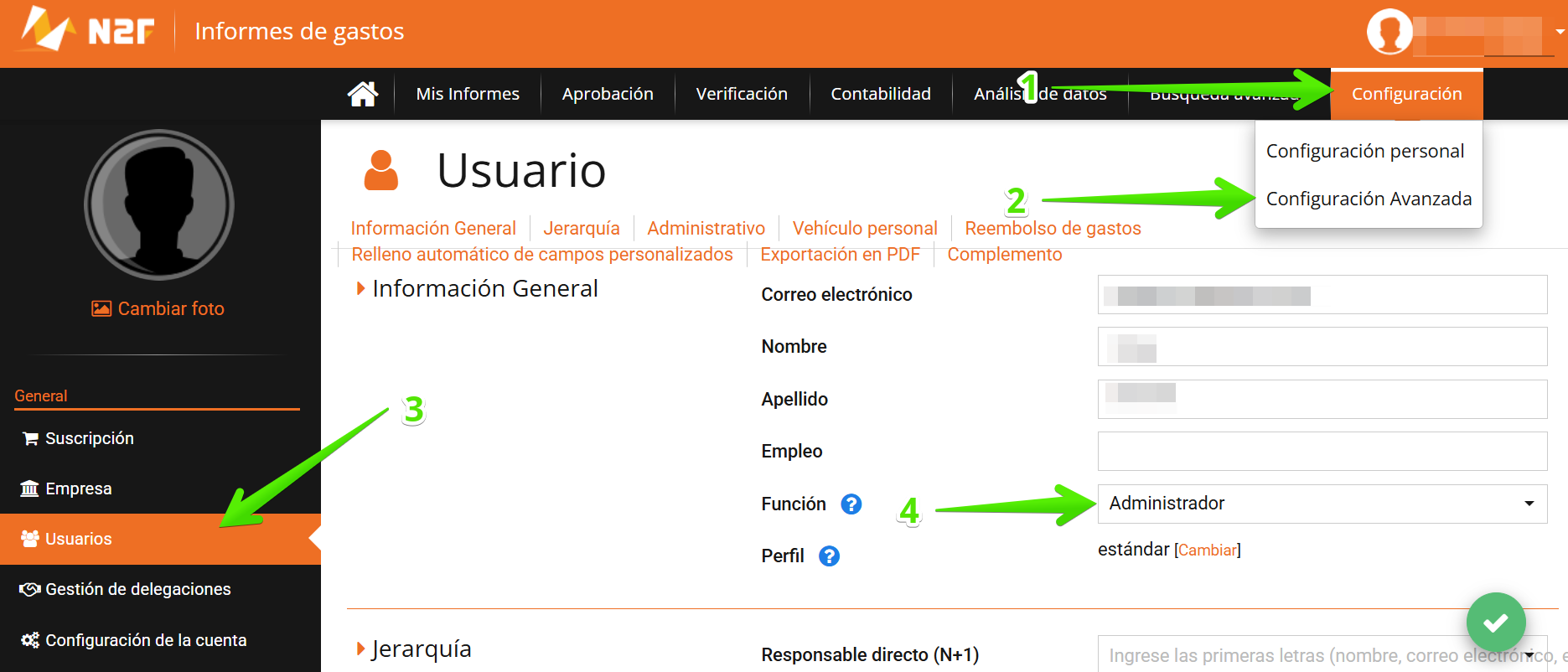 • Responsable: rol que permite ingresar notas de gastos y aprobar las de sus colaboradores.