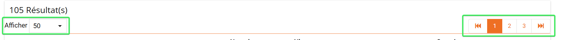Vous pouvez également sélectionner l'affichage qui vous convient pour adapter la recherche à votre besoin, en sélectionnant un affichage par 50, 100 ou 200 résultats