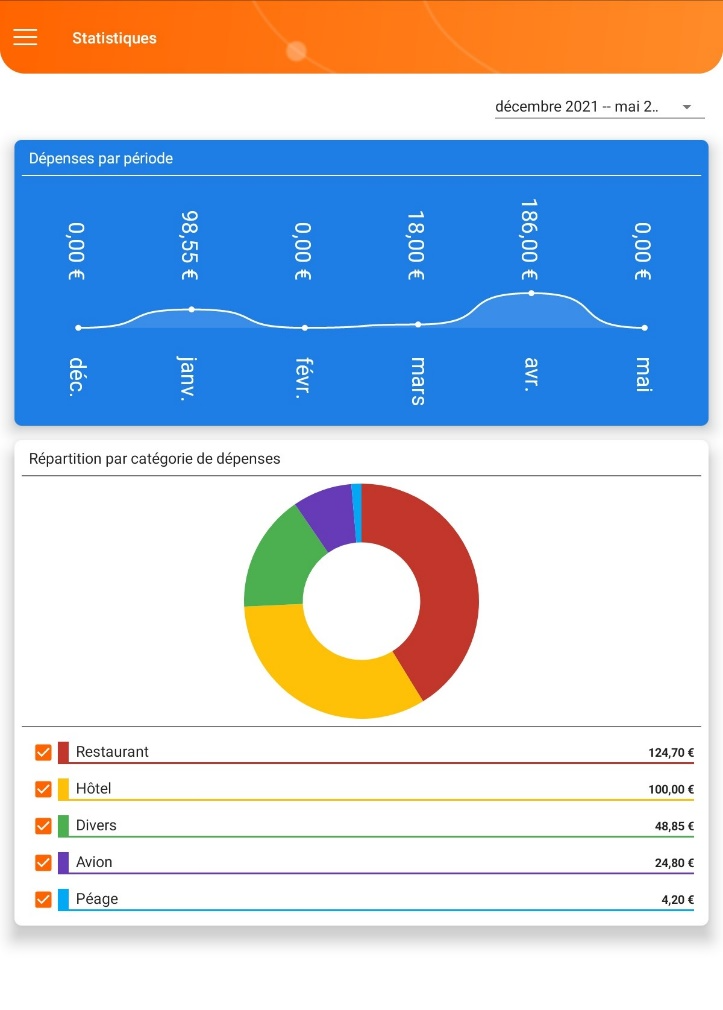 Grâce à ses accès simplifiés, la saisie des frais sur notre application sera optimisée. Vous aurez également la possibilité de consulter les statistiques de vos dépenses en temps réel, ce qui vous permettra en outre de réaliser des analyses sur vos dépenses par période ou catégorie.
