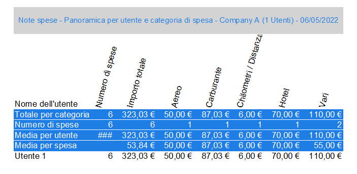 È ormai possibile estrarre una sintesi delle spese dichiarate da un collaboratore e per categoria.