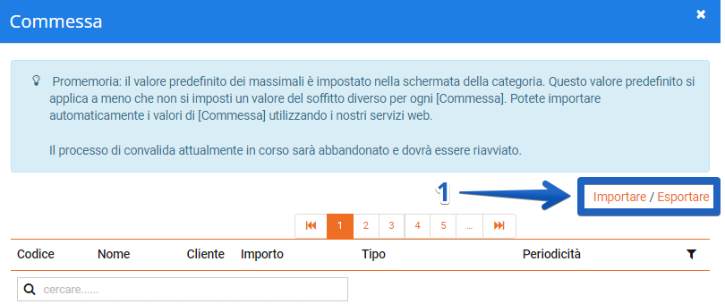Successivamente, sarà possibile importare questi dati (1) scaricando il file di importazione adeguato (2) da completare e poi da re-importare (3).