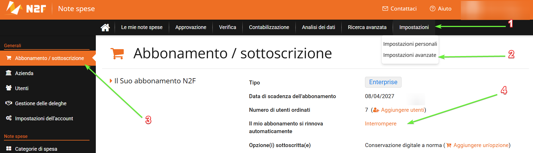 Nel campo “numero di utenti” potrai indicare il numero di licenze a cui desideri sottoscriverti per il prossimo periodo di abbonamento.